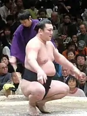 Acceding to his mother's wishes, at eighteen he joined Isenoumi stable and first entered the ring in March 2005. He took the shikona or ring name of Ikioi from his first pro tournament. In his second tournament in July 2005 in the jonidan division he achieved a perfect record, but lost his second bout in a three-way playoff for the championship to the future Daidō. In September 2006 while competing in the makushita division he was punched in the face in the dressing room after a bout with forty-year-old Kotokanyu, who apparently objected to being slapped around the face (a legitimate tactic known as harite) by someone over twenty years his junior.[1] Kotokanyu was told to retire immediately afterwards. Over the next five years, Ikioi managed to work his way slowly up the ranks until he was finally awarded promotion to the salaried jūryō division after a 5–2 record at makushita 3 in September 2011. In contrast to his slow progress previously, Ikioi found unprecedented success in the jūryō second division. He had only one loss in the first thirteen days of his jūryō debut, and even though he lost his last two bouts he still managed to win the tournament. His 10–5 record in the following January 2012 tournament earned him promotion to the makuuchi top division.