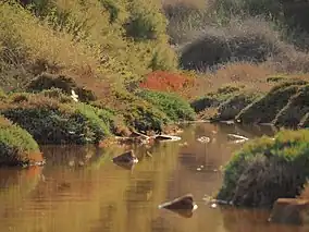 Such a small wetland located in very close proximity to the sea lures vagrant, rare and scarce birds . The salt-marsh serves as a refuge to a variety of resident and migratory birds, due to the shelter and food resources that may be found in the area. Flat muddy stretches are particularly suitable for waders such as the Common Sandpiper. Sedentary species take advantage of the shrubs that surround the area. It has also been established that the area is an important location for wintering birds that usually migrate to milder temperatures to avoid freezing temperatures in the north of the European continent.[6]