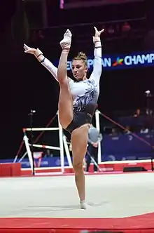 At the European Championships in April, her qualifying score put her in 31st place but she failed to advance to the all-around final as her teammates Giulia Steingruber and Jessica Diacci had qualified ahead of her.[20] In May she performed at the World Challenge Cup in Varna, Bulgaria, where she won bronze on beam and gold on floor.[21]