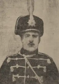 Romanian sources traditionally claim that Cătărău was not a member of the ethnic Romanian community, but rather a Bessarabian Bulgarian.[1][8] Author N. Porsenna, who met him when they were both in their twenties, contrarily surmises that Cătărău stood as "a fine example of the Romanian race—for he was indeed unquestionably Romanian, and not a Moskal"; he refers to Cătărău's imposing stature of almost 2 meters (6.5 feet) and athletic build. Porsenna also notes that Cătărău was strongly acculturated into the "Russian spirit", being "one-third of a decent man, one-third of a nihilist, and the remaining third a prankster."[7] Cătărău and his several sisters were orphaned at an early age. He was sent to Russian Orthodox schools in Ananiv and Odessa, and attended for a while the Bessarabian Seminary.[6] Unable to complete his education there, he was instead enlisted by the Imperial Russian Army and served in the Hussar regiment of Warsaw.[6] He sometimes introduced himself as a Russian officer, who had left service due to persecution.[9] Later accounts suggest that he was merely a cavalry soldier.[2][10]