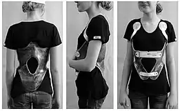 The most common method for treating iliocostal friction syndrome is usually with acupuncture,[16] physical therapy, muscle relaxants, and activity modification.[19] Treatment may involve addressing the underlying pathology of the condition as hyperkyphosis, osteoporosis and scoliosis may be treated with postural training and muscle strengthening methods. Orthosis, a specialty that involves individuals being fitted with a brace or harness may help correct the curvature of the spine.[6][20] Rib-compression belts have also been used as a conservative form of treatment for iliocostal friction syndrome. A 3-inch wide lower rib-compression belt is fitted above the iliac crests and tightly adjusted to provide pressure on the lower ribs. Since the lower ribs are attached to the sternum by flexible hyaline cartilage, they can be pushed inward with ease, and as a result, the compression shifts the ribs away from the iliac crests, preventing iliocostal contact.[2][4]