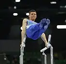 Kovtun competed at the Cottbus World Cup in February. On the first day of qualifications Russia launched a full-scale invasion of Kovtun's home country of Ukraine. Despite news of the ongoing war, Kovtun won gold on parallel bars and silver on pommel horse and finished fourth and fifth on floor exercise and horizontal bar respectively.[12] Kovtun next competed at the Doha World Cup where he qualified to all six apparatus event finals. On the first day of event finals he won silver on floor exercise behind Artem Dolgopyat and placed fifth and sixth on pommel horse and rings respectively. On the second day of event finals he won gold on parallel bars and bronze on horizontal bar behind Alexander Myakinin and Robert Tvorogal and placed sixth on vault.[13] During the medal ceremony for the parallel bars Russian gymnast and bronze medalist Ivan Kuliak wore a Z on his chest – a military symbol and a sign of support for Russia's invasion of Ukraine – despite sharing a podium with Kovtun, a Ukrainian athlete, and Kazakh gymnast and silver medalist Milad Karimi who lives and trains in Ukraine.[14][15] At the Cairo World Cup Kovtun won his third consecutive gold medal on the parallel bars.[16] Kovtun finished the World Cup circuit competing at the Baku World Cup. He won his fourth consecutive gold medal on the parallel bars, completing a clean sweep of the titles. Additionally he won the bronze on horizontal bar.[17]