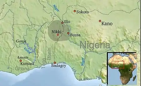 Illo was one of the Northern Borgu Kingdoms, small but wealthy, and it fought a number of wars with its neighbors in the nineteenth century including the Samba War and conflicts with Gwandu of the Sokoto Caliphate.[1]