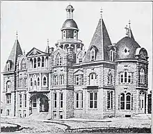 The need for Black women to serve as teachers in the elementary schools attached to the various Black Lutheran congregations in Virginia and North Caroline led to an appeal for girls to enroll. The response was gratifying, but the additional students made it clear that a new facility was needed.[7] A 13-acre (5.3 ha) site in northeast Greensboro near North Carolina A&T college[8] was donated by Garland Daniel,[2] and a contract with A. L. Schlosser to erect the Administration Building on the new campus was signed on June 13, 1904. The cornerstone was laid on September 15, 1905. The college relocated in July 1905 when construction was beginning, and two nearby houses were rented for students to sleep and eat in until the Administration Building, which would also serve as the men's dormitory, was completed in 1907[7][8] Schmidt, the pastor of Evangelical Lutheran Grace Church in Greensboro, supervised the construction.[2] The final cost of the of $28,000 was twice as much as had been budgeted. Some of the extra cost was due to higher than expected labor and material costs, but most of it was due to the building being larger than originally planned. The overrun caused budget problems for the Synodical Conference's mission efforts for several years.[9] As originally constructed, the exterior of the building was an "exotic structure blending many architectural elements", but it was later remodeled as "a basic stone building".[10]