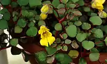 Impatiens repens, the Ceylon balsam, yellow impatiens, or creeping balsam,[1] is a species of flowering plant in the family Balsaminaceae, from Sri Lanka. As the Latin name repens indicates, it is a low-growing plant with a creeping habit.[2] This evergreen perennial can be found in wet-zone rain forests. Growing to 50 cm (20 in) tall and broad, it has small kidney-shaped leaves borne on red stems, and hooded yellow flowers in summer and autumn. It can be seen cultivated in gardens as an ornamental plant. In temperate zones it must be protected from temperatures below 10 °C (50 °F), so must be grown under glass during the winter months, It requires a sheltered position in partial shade.