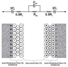 When a pair of electrodes are immersed in the growth medium, the system composed of electrodes and electrolyte can be modeled with the electrical circuit of Fig. 1, where Rm and Cm are the resistance and capacitance of the bulk medium, while Ri and Ci are the resistance and capacitance of the electrode-electrolyte interface.[8] However, when frequency of the sinusoidal test signal applied to the electrodes is relatively low (lower than 1 MHz) the bulk capacitance Cm can be neglected and the system can be modeled with a simpler circuit consisting only of a resistance Rs and a capacitance Cs in series. The resistance Rs accounts for the electrical conductivity of the bulk medium while the capacitance Cs is due to the capacitive double-layer at the electrode-electrolyte interface.[9] During the growth phase, bacterial metabolism transforms uncharged or weakly charged compounds of the bulk medium in highly charged compounds that change the electrical properties of the medium. This results in a decrease of resistance Rs and an increase of capacitance Cs.