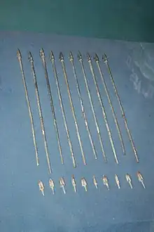 Early Chinese armies were relatively small affairs. Composed of peasant levies, usually serfs dependent upon the king or the feudal lord of their home state, these armies were relatively ill-equipped. While organized military forces had existed along with the state, few records remain of these early armies. These armies were centered around the chariot-riding nobility, who played a role akin to the European knight as they were the main fighting force of the army. Bronze weapons such as spears and swords were the main equipment of both the infantry and charioteers. These armies were ill-trained and haphazardly supplied, meaning that they could not campaign for more than a few months and often had to give up their gains due to lack of supplies.[5] The shi knights had a strict code of chivalry. During the Shang and Western Zhou eras, warfare was seen as an aristocratic affair, complete with protocols that may be compared to the chivalry of the European knight.[6] States would not attack other states while mourning its ruler. Ruling houses would not be completely exterminated so descendants would be left to honor their ancestors.[7] Examples of this code include the battle of Zheqiu, 420 BC, in which the shi Hua Bao shot at and missed another shi Gongzi Cheng, and just as he was about to shoot again, Gongzi Cheng said that it was unchivalrous to shoot twice without allowing him to return a shot. Hua Bao lowered his bow and was subsequently shot dead,[8][9] or in 624 B.C. when a disgraced shi from the State of Jin led a suicidal charge of chariots to redeem his reputation, turning the tide of the battle.[8] In the Battle of Bi, 597 BC, the routing chariot forces of Jin were bogged down in mud, but pursuing enemy troops stopped to help them get dislodged and allowed them to escape.[10] During the Spring and Autumn period (771–479 BC), Duke Xiang of Song, when being advised to attack enemy Chu forces while the enemy army was fording a river, refused and waited for the Chu army to form formation. After Xiang lost the battle and was being rebuked by his ministers of war, he responded: "The gentleman does not inflict a second wound, nor does he capture those with gray hair. On campaigns, the ancients did not obstruct those in a narrow pass. Even though I am but the remnant of a destroyed state, I will not drum an attack when the other side has not yet drawn up its ranks."[7] His minister retorted, "My lord does not know battle. If the mighty enemy is in a defile or with his ranks not drawn up, this is Heaven assisting us", signifying that by the Spring and Autumn period such attitudes on chivalric honor was dying out.[6]
