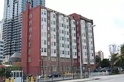 The Imperial Hotel in Atlanta is one of the few remaining tall buildings from the city's construction boom in the early 20th century. The former hotel was opened in 1910, has 8 stories, and is representative of the Chicago school due to the flat roof and brick facade with grids of bay windows. It contains two historic Otis elevators. It was abandoned in 1980, added to the National Register of Historic Places a few years later, eventually converted to low-income housing, and is undergoing another round of renovations as of 2012.[2][3]