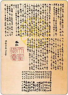 After pondering deeply the general trends of the world and the actual conditions obtaining in our empire today, we[lower-alpha 1] have decided to effect a settlement of the present situation by resorting to an extraordinary measure.