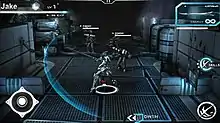 Implosion is a third-person hack-and-slash that allows players to use their mecha's sword as well as ranged gun attacks.[4] The player's mecha uses rolling to dodge enemy attacks and can combo attacks in sequence.[4] The mecha is also customizable with different parts bought from a shop, which can change how it controls, although the gameplay is mainly skill-based.[4]