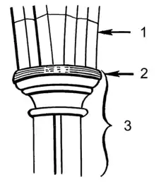 The imposts are left smooth or profiled, and "then express a certain separation between abutment and arch."[3] The Byzantine fighters are high blocks, which are sometimes referred to as pulvino. The Romanesque designed the impost ornamentally or figuratively, similar to the capitals. In the Gothic period, the fighter almost completely disappeared from the calyx bud capital. The architecture of the Renaissance returns to the formation of the imposts of the ancient column orders.[4]