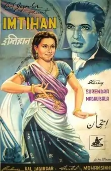 Imtihaan (transl. "Test") is a 1949 Bollywood Hindi romantic drama film directed by Mohan Sinha[1] and starring Madhubala and Surendra in lead roles.[2]