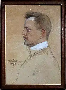 Only in 1909, after his throat surgery which made him think of death, he returned to the idea. Erik Tawaststjerna assumes that he wrote it also for himself. He composed a first version in 1909, completed on 14 December 1909.[1] His models were the funeral marches of Beethoven's Symphony No. 3 "Eroica" and Wagner's Götterdämmerung. The work in sonata form is introduced by the violins and violas, with a main theme developing "like the approach of a distant cortege".[2] He sent the work to the publisher Breitkopf.[2]