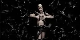 In the video, Dev is seen in a club scene with intense dancing.[36] The main focus is black-painted hands and arms, which are prominent in several shots of Dev as she is standing naked while the hands are touching her body. Some of the hands were digitally added, but most of them were real, including the ones touching Dev.[3] She explained, "The extras were amazing, they let me paint their hands and bodies, and they stacked on top of each other and did that for hours. For takes and takes and takes."[3] The video also includes shots of an albino ball python and a tarantula.[36] Cory Lamz of Westword wrote a positive review of the video: "Watching 'In the Dark' is like dancing under a strobe light on ecstasy. In a sea of hands, literally, Dev manages to tease you, seduce you and entice you. She makes you want to touch her, just like every other hand in the video."[37] Contessa Gayles of AOL Music referred the video to as "freaky" and "funky", writing "Forget 'dancing in the dark,' Dev works it in a sea of dismembered, black-painted hands and arms in this freaky, funky new vid."[36] In contrast, Becky Bain of Idolator called it "somewhat unsettling".[38] Bill Lamb of About.com wrote that the video "will likely leave you never looking at hands exactly the same".[12]