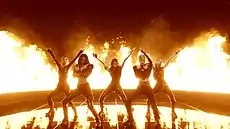 Three teaser videos were released prior to the song's release. An accompanying music video was uploaded to JYP Entertainment's YouTube channel on April 30, 2021. It was directed by Bang Jae-yeob.[22] In three days, the music video reached fifty million views.[23] After one week, the video suprassed over 70 million views.[24] The dance practice video was uploaded on May 2, 2021, and has received over 6 million views as of May 2021.[25] On May 22, 2021, the music video hit 100 million views, which took only 22 days and 12 hours to achieved, becoming the quickest of the group's videos to reach the milestone.[26] The music video opens with Ryujin in a cropped jacket and pleated skirt posing among mannequins in a fashion shop. The next scene shows the group all in black while dancing in a streets in a small town. The scene shifts to a quaint floral greenhouse, where Lia is shown singing in a floral gown with Itzy dressed in elegant clothes. Later in the clip, the girl group showcase their fierce choreography on a set decorated with samurai swords. Then, Yuna is shown next to a mirror in a neon green draped dress with a black bodysuit. In the next part, the group is dancing surrounded by flames.