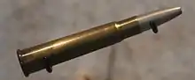 Belgian inventor de Wilde, who was living in Switzerland, invented a new bullet in 1938. In December of that year the British Air Ministry purchased the design. However, as the bullet had to be made by hand rather than mass-produced, Major C. Aubrey Dixon of the British Royal Arsenal at Woolwich developed a greatly improved bullet with similar incendiary capabilities.[5] This was adopted by British forces as the 0.303 Incendiary B Mark VI. For security reasons, and to confuse the enemy, it was initially called 'de Wilde' ammunition, even though the design was almost entirely different from the original version. The B Mark VI incendiary bullet was packed with nitrocellulose, and a small steel ball was placed in the tip of the bullet to ensure that the chemical exploded on impact. As opposed to earlier designs, the B Mark VI was a true incendiary rather than tracer ammunition.[6] The B Mark VI incendiary bullets were first issued in June 1940 and tested operationally in the Hawker Hurricane and Supermarine Spitfire in the air battles over Dunkirk. The explosive power, coupled with the flash on impact which guided their aim, was much appreciated by pilots. The bullets were at first scarce, and as a result, a mix of ball, AP, Mk IV incendiary tracer and Mk VI incendiary were used until production increased to sufficient levels. By 1942 the standard loading for fixed .303s was half loaded with AP and half with incendiary bullets.[7]