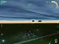 There are three different game modes. The campaign mode follows the main storyline, in which the player must complete a series of objectives to neutralise the alien threat. Typical goals include transporting cargo and defending allied convoys.[5] Two variants of the campaign exist: "campaign action" purely consists of the simulation missions; "campaign tactics" features the same main missions as campaign action, but with some extra sub-missions. These sub-missions take place in the "tactical display", where the player controls several vehicles and gun emplacements in a similar manner to real-time strategy games.[4]