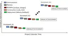 The series of releases is referred to as “increments”, with each increment providing more functionality to the customers. After the first increment, a core product is delivered, which can already be used by the customer. Based on customer feedback, a plan is developed for the next increments, and modifications are made accordingly. This process continues, with increments being delivered until the complete product is delivered. The incremental philosophy is also used in the agile process model (see agile modeling).[1]
