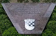 ![]() The memorial plaque in front of the building where independence was proclaimed by the Sabor | |