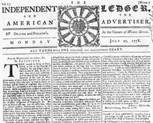 The Independent Ledger and the American Advertiser (June 15, 1778 – October 16, 1786) was a weekly newspaper published in Boston, Massachusetts, by Draper & Folsom.[1] The 4-page paper was issued on Mondays, in contrast to Boston's other weeklies, which came out on Thursdays. When Draper left the partnership in 1783, Folsom continued publishing the newspaper until it ceased in 1786.[2]