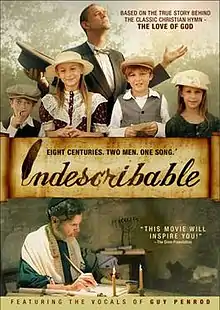 Indescribable is a 2013 film produced by Thorncrown Project in association with Crystal Creek Media, which produced films such as Creed of Gold and Courageous Love. Filming took place during June and July 2011 in Bryan, Texas. The story is based on the historical events surrounding the writing of the hymn "The Love of God". It was released to home video on April 6, 2013.