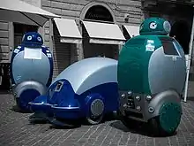 A Dustbot is a domestic robot that can collect garbage from homes. It can be summoned by phone call or SMS, and uses GPS to automatically make its way to the customer, collect the rubbish, and take it to a dustbin.