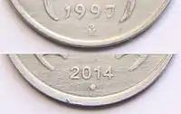 Coins minted at the India Government Mint, Noida carries its mint mark of a small or large dot (° or o).[5]