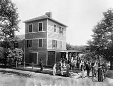 This was primarily a sailing club and Henry E. Doremus was the first Commodore, William Ross Proctor the Vice Commodore, and Charles J. Hart the Rear Commodore. The club's first headquarters were in New York, and in 1892 it leased Finch's Island in Greenwich as its sailing base. The present property was developed in 1895 by Commodore Charles T. Wills, and the clubhouse dates to 1921. It is an unusual example of Mediterranean Revival design, by architect Henry Pelton, then a member of the club's race committee.[2]