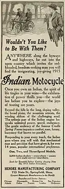 - "Advertising: More Indian Motorcycles Made Perfect Scores". Motorcycle Illustrated. Motorcycle Publishing Co. IV (17). September 1, 1909. Retrieved 2009-08-15.