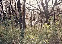After regular maintenance, efforts in the park have removed non-native species and other underbrush to return the park to its original state, that of an oak savanna.
