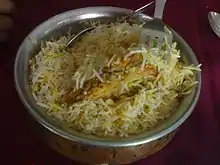 Indian food is also heavily influenced by religion, in particular Hinduism and Islam, cultural choices and traditions.[1][2]