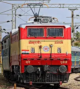 The Indian locomotive class WAP-1 is a class of 25 kV AC electric locomotives that was developed in 1980 by Chittaranjan Locomotive Works for Indian Railways. The model name stands for broad gauge (W), AC Current (A), Passenger traffic (P) locomotive, 1st generation (1). They entered service in late 1981. A total of 65 WAP-1 were built at CLW between 1980 and 1996, which made them the most numerous class of mainline electric passenger locomotive until its successor, the WAP-4.