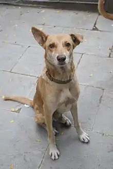 The namesake of this breed was given during the British Raj in India after the Pariah tribe of the Madras Presidency.[15] From the Anglo-Indian word pye or paë and Hindi pāhī meaning 'outsider', the Indian pariah dog is sometimes referred to as the pye-dog (also spelt pie or pi) and the Indian native dog.[16] It is popularly known as Desi Kutta or Desi Dog (which derives from the Hindi-Urdu word desi, meaning native), as well as the Indi-dog or In-dog (in various spellings).[4][17] It was referred to in the works of Rudyard Kipling as the "yellow pariah dog".[18]
