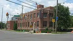 The Indiana Oxygen Company Building is a historic industrial building located at Indianapolis, Indiana. It was built in 1930, and consists of a two-story, rectangular main building on a raised basement, with an attached one-story, "U"-shaped warehouse. Both building are constructed of brick. The main building features applied Art Deco style limestone and metal decoration.[2]: 2–3