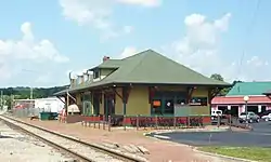 Built by the Buffalo, Rochester and Pittsburgh Railway in 1904, this historic structure is a 1+12-story, wood-frame building with weatherboard siding which was designed in a railroad vernacular-style. It features a generous overhang on all four sides.[2] It housed a restaurant named Tazé until mid-2016.[3]