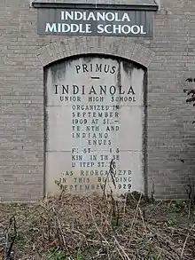 In recognition of Columbus, Ohio,'s role in the early junior high school movement (and the Indianola school's in particular), a tablet was incorporated into the structure of the Indianola Junior High School building which reads: