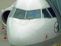 ITO films deposited on windshields are used for defrosting aircraft windshields. The heat is generated by applying a voltage across the film. ITO is also used to reflect electromagnetic radiation. The F-22 Raptor's canopy has an ITO coating that reflects radar waves, enhancing its stealth capabilities and giving it a distinctive gold tint.[6]