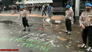 Several police personnel were criticized for using excessive force on the protesters. It was reported that the police shot tear gas towards a group of protesters that were simply waiting for another group.[57] Jakarta's police also said that they would not allow more protests due to the COVID-19 burden.[58] A video recorded by the Associated Press (AP) showed a student collapsing three meters from a police barricade after a gunshot was heard. According to the South China Morning Post (SCMP), one student carried him away. His condition is still unclear.[59]