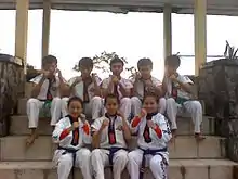 Sisemba is a kick-fighting activity practised by the Toraja of South Sulawesi. While sisemba is its formal name, it is also known as semba or sempak. Native to the Batan and Pangalla areas in the North Toraja Regency, it is today mainly seen in the Toraja cultural centre of Rantepao. The ritual of mass kick-fighting is usually performed as part of the rice harvest festival in Tana Toraja villages. According to tradition, sisemba is a prerequisite for the next successful harvest.[11] In the practice of sisemba, hundreds of participants from two villages join hands and form lines of two or more people. They may be linked by the arms or by clasping hands. The line is not necessarily straight but may take the form of a V-shape, an inverted V-formation, a wedge, a circular arc either concave or convex, or any other shape. Once joined in line, all participants must be linked except the men on the ends of each line. Once the opposing ranks come within range, they kick at each other in an attempt to knock players out of the opponent's line.[11] A divided line is then overwhelmed by the superior numbers of the opposing line, who manoeuvre and surround stragglers. Smaller lines are however capable of more agile manoeuvres, such as sending the player at the end of a line flying through the air completely off the ground, and then pulling them back in a whip-like manner after they've struck the opponent. Any sort of kicks are allowed and any part of the body may be targeted so long as the link to the line is maintained. An individual who has been knocked out of line may get up and rejoin their line; until rejoining he is off-limits to the attacks of the opposing team. In earlier days, such an individual would be kicked into submission or until unconscious.