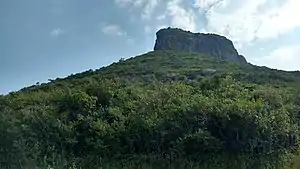 The nearest town is Chandwad which is 69 km from Nashik. The base village of the fort is Indraiwadi which is 9 km from Chandwad. There are good hotels at Chandwad, now tea and snacks are also available in small hotels at Indraiwadi. The trekking path starts from the hillock south of the Indraiwadi village. The route is very safe and passes through dense scrubs. There is no marked path that leads to the fort. it is advisable to hire a local guide from the village. It takes about two hours to reach the scarp of the fort. a narrow path along the base of the scarp takes a northern detour to reach the rock-cut steps. The steps are 2m wide and 150 in number. It takes about 15 minutes to climb the steps. The entrance gate is nowhere seen. There is plenty of water available on the fort. The night stay on the fort can be made in the caves on the fort.[2]