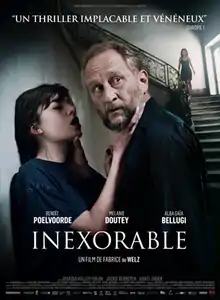 Inexorable is a 2021 Belgian-French thriller film written by Joséphine Darcy Hopkins and Fabrice du Welz, who is also the director. The film stars Benoît Poelvoorde, Alba Gaïa Bellugi, Mélanie Doutey, Jackie Berroyer and Anaël Snoek.[2][3] The film premiered at the 47th Deauville Film Festival on 7 September 2021.[4][5] It was theatrically released in France on 6 April 2022.[6]