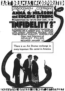 Infidelity is a lost[1] 1917 silent film drama directed by Ashley Miller and starring Anna Q. Nilsson, Eugene Strong and Miriam Nesbitt.[2]