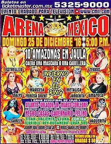 Infierno en el Ring (2016) (Spanish for "Inferno in the Ring") was a major professional wrestling event produced and scripted by the Mexican lucha libre promotion Consejo Mundial de Lucha Libre (CMLL) that took place on Friday December 25, 2016 in Arena México, Mexico City, Mexico. The show replaced CMLL's regularly scheduled CMLL Super Viernes show as is tradition with most of CMLL's signature events. The 2016 event marked the eight time CMLL has held a show under that name with previous shows in 2008, 2009, 2010, 2012, 2013, 2014 and 2015. Each of the shows has featured a main event, multi-man steel cage match, contested under Lucha de Apuestas, or bet match rules referred to as Infierno en el Ring. According to the rules the loser of the match, the last person to remain in the cage, would be forced to have his hair shaved off per Lucha Libre traditions.