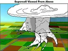 Inflow is the flow of a fluid into a large collection of that fluid.[1] Within meteorology, inflow normally refers to the influx of warmth and moisture from air within the Earth's atmosphere into storm systems. Extratropical cyclones are fed by inflow focused along their cold front and warm fronts. Tropical cyclones require a large inflow of warmth and moisture from warm oceans in order to develop significantly, mainly within the lowest 1 kilometre (0.62 mi) of the atmosphere. Once the flow of warm and moist air is cut off from thunderstorms and their associated tornadoes, normally by the thunderstorm's own rain-cooled outflow boundary, the storms begin to dissipate. Rear inflow jets behind squall lines act to erode the broad rain shield behind the squall line, and accelerate its forward motion.