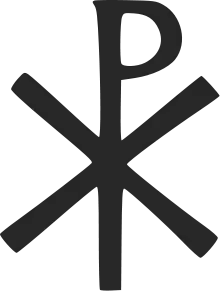 Ancient Rome utilized similar political warfare as the Greeks including rhetoric, as displayed by Cicero; and art, as seen in coinage, statues, architecture, engineering, and mosaics. All of these elements were intended to portray Rome's imperial dominance over its subject nations and the superior nature of Roman society.[26] Following a religious vision, the emperor Constantine I in 330 CE bound the Roman state to the universal Christian Church. In doing so, he linked "religious commitment with imperial ambition" that proved to be quite successful and powerful.[27] One long-lasting symbol of this is the Chi Rho, which forms the first two letters of the Greeks' name for Christ. This symbol was used for over one thousand years by Constantine's successors as a symbol of "imperial majesty and divine authority"[28] and still is a powerful symbol within Christianity.