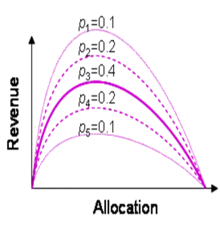 This is shown in Figure 6. If the uncertainty will increase, the envelope of uncertainty will become more inclusive, to include instances of the total revenue function that, for the specific allocation, yields a revenue smaller than the critical revenue.