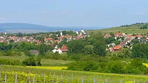 An obelisk on the south side of the village in direction Wackernheim, marks the road begun by Charlemagne, and completed by Napoleon. From this point a fine prospect of the entire Rheingau could be obtained.[3]