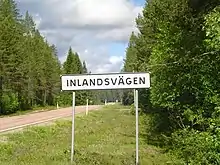 Inlandsvägen (The Inland Road) is a road passing through the center of Sweden from Gothenburg in the south to Karesuando in the north.[1] Inlandsvägen is at the same time the European route E45 in Sweden. The term Inlandsvägen is also used about Riksväg 26 (National Road 26) that begins in Halmstad in the south and ends in Mora in the midst of Sweden, even though this is called Inlandsvägen Syd (The Inland Road South).