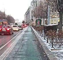 "ban on cyclists". On 22 November 2012, a plaintiff filed an appeal against the ban on cycling on the carriageway on certain sections of the Inner City Ring Road (Promenadenring). He prevailed before the Saxon Higher Administrative Court. [20] The city of Leipzig is implementing the judgment in sections, accompanied by lively public discussions. [21] In 2022, green bike lanes were pigmented on several sections of the inner city ring road.