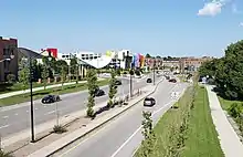 On December 2, 2014, the Inner Loop's eastern side was closed permanently to start the $21 million Inner Loop East project, which transformed the freeway into an at-grade street.[3] The project was completed on November 22, 2017, at which time the Inner Loop ceased to exist as a complete loop, terminating instead at a signalized intersection with East Main Street and University Avenue.[15] In a 2021 editorial, The New York Times praised the project as an achievement in removing urban highways to improve American cities, noting the project's creation of space for new development.[16]